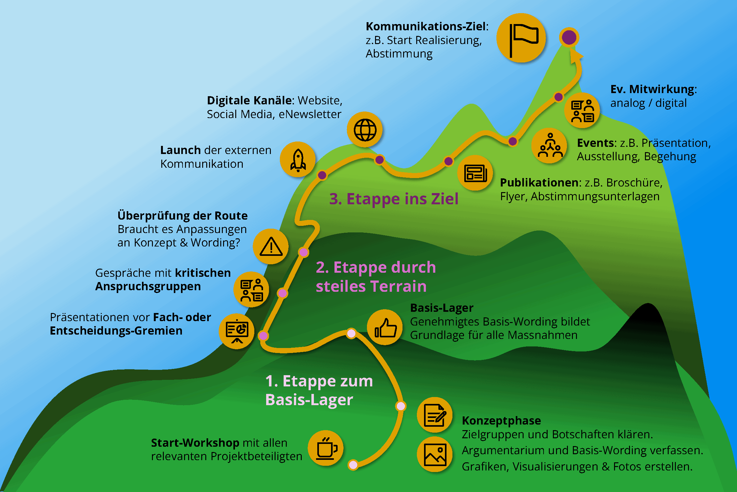 Das Quartier wird gemeinsam von HIAG, der SBB und unter Mitwirkung der Gemeinde Niederhasli entwickelt. Ende 2024 entscheidet die Stimmbevölkerung über den Gestaltungsplan. Wir dürfen das Projekt mit einer breiten Palette an Kommunikationsmassnahmen unterstützen: Website, Projektzeitung, Informations-Event, Medienarbeit, Argumentarium, Weiterentwicklung der Bildsprache u.a.